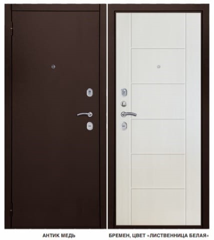 Дверь металл. антик медь ФЛ(7) Бремен Лиственница белая 2,05*0,97 правая
