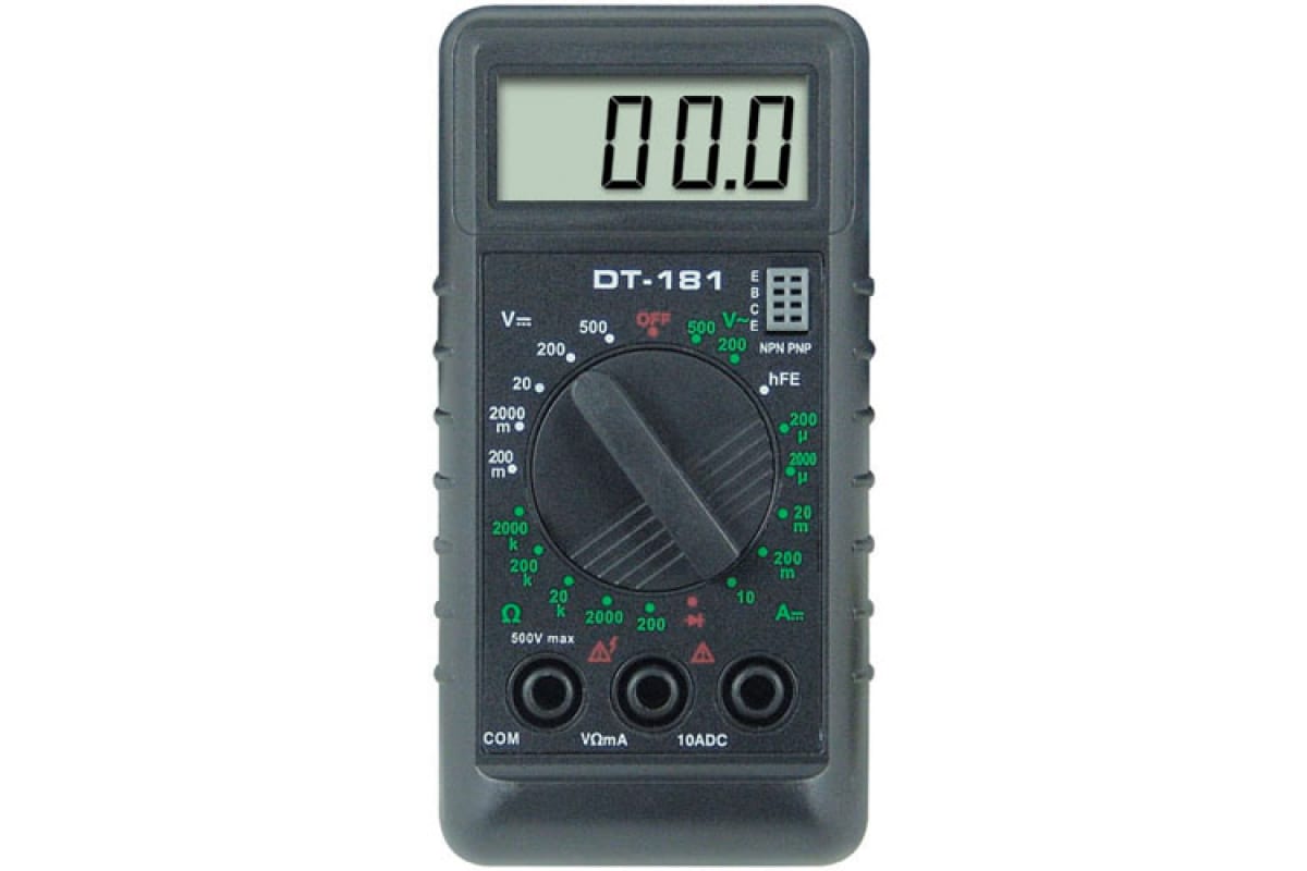 Мультиметр ТЕК DT 838 предназначен для измерений постоянного/переменного напряжения и тока, сопротивления, проверки диодов, транзисторов и звуковой прозвонки. Модель оснащена удобным переключателем режимов работы и пределов. Также стоит отметить высокую чувствительность - 100 мкВ. Изделие широко используется как в домашнем хозяйстве и мастерских, так и в лабораториях.