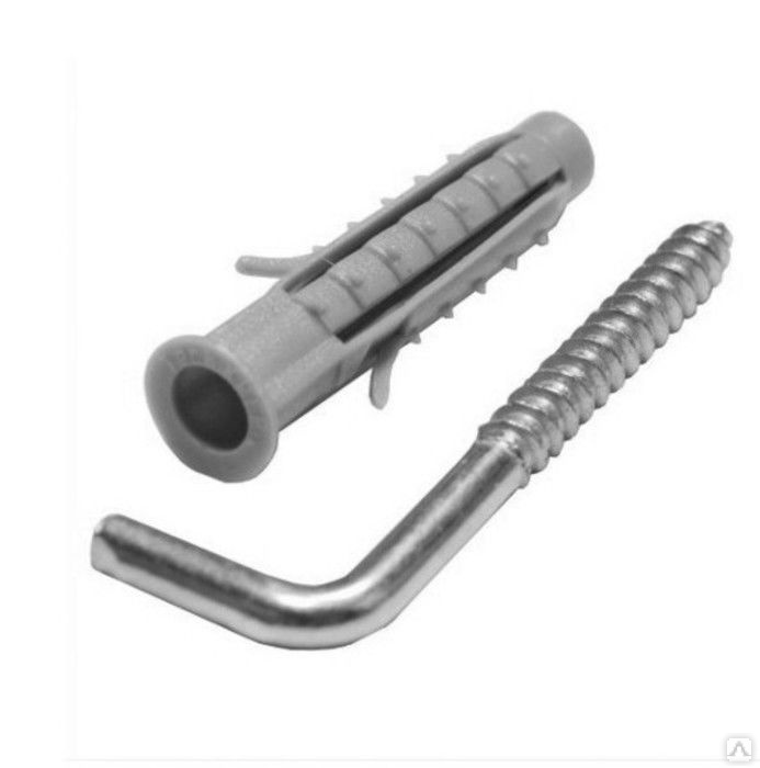 Дюбель-Шуруп кольцо, костыль, полукольцо.(в комплекте) Головка - кольцо, полукольцо, костыль. Шлиц – нет. Резьба - разреженный шаг. Наконечник – острый. Материал - сталь С1018 Покрытие – цинк. Шурупы с основанием кольцо, полукольцо, костыль используются для бытовых нужд, монтируются в деревянную основу. При комбинировании с дюбелем монтируются в бетон. Рекомендуются для креплений легкого типа. Не подходят для крепления люстр.