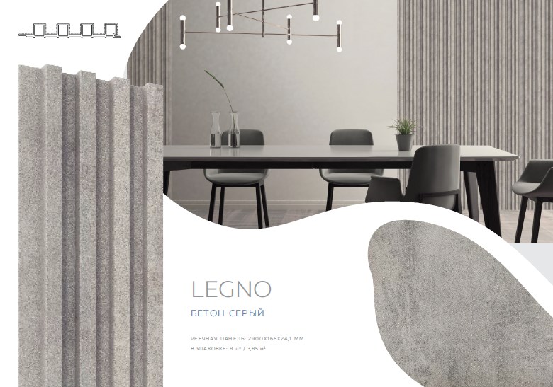-----Реечная панель LEGNO -Бетон серый- 2900х166х24,1мм=0.4814кв.м. /Cronaplast/ /8шт./