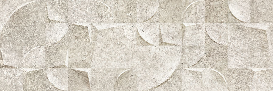 Базовая плитка Sensa от Alma Ceramica имитирует слэб песчаника характерного бежево-песочного цвета. Стены, облицованные только таким кафелем, смотрелись бы скучно, поэтому дизайнеры добавили сюда модули-компаньоны с рельефной поверхностью. Это кафель с продольными бровками, словно высеченными в камне зубилом, и модуль с выступающими геометрическими элементами.
