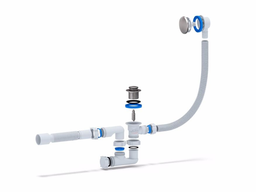 — комплект для ванны с гибкой трубой. Гофрированный сифон блокирует неприятные запахи из канализации. В трубе всегда есть небольшое количество воды, которая и предотвращает появление неприятных запахов. Регулируемая длина гофры позволяет установить раковину на нужном расстоянии от канализации. Диаметр присоединительного отверстия: 50 мм. Минимальная длина гофры: 220 мм. Максимальная длина гофры: 375 мм.