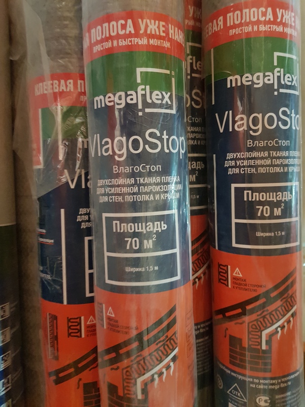 -----Гидро-пароизоляционная двухслойная пленка Megaflex VlagoStop (влагостоп) D 1,5*70м2
