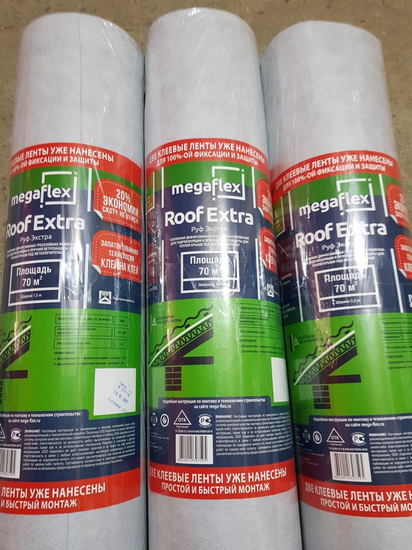 -----Влаго-ветрозащитная усиленная диффуз.трехслойная мембрана Megaflex Roof Extra(крыша экстра) 1,5*70м2