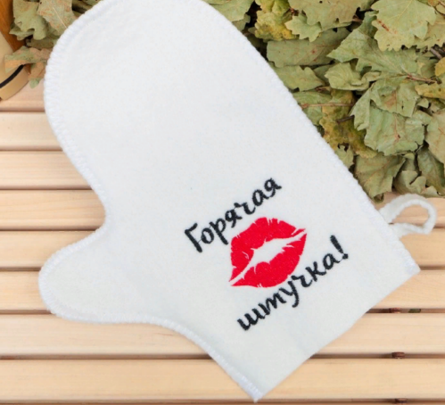 -----Рукавица для бани с вышивкой "Горячая штучка" первый сорт