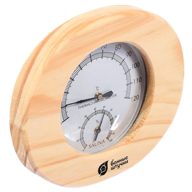 -----Термогигрометр Банная станция овальный 16*14*3см в дер корпусе для бани и сауны