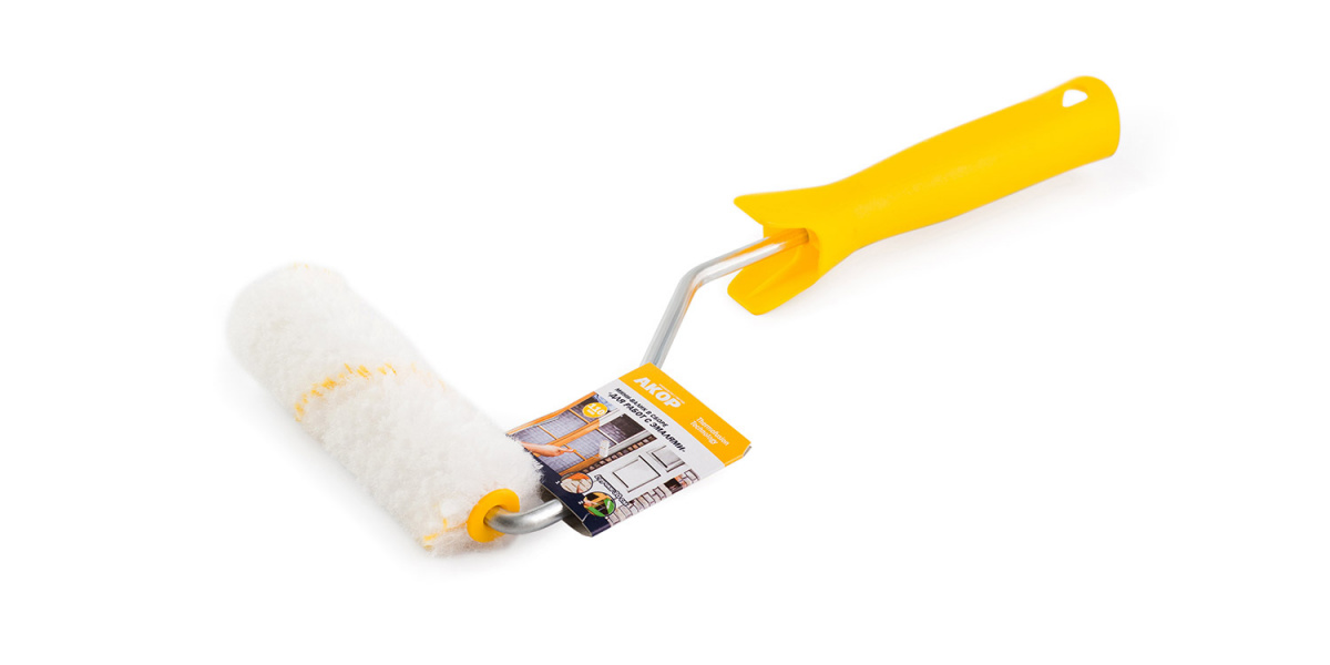 Валик-МИНИ в сборе "Для работ с Эмалями" /110мм, ручка 30см, полиамид/ АКОР /50шт./