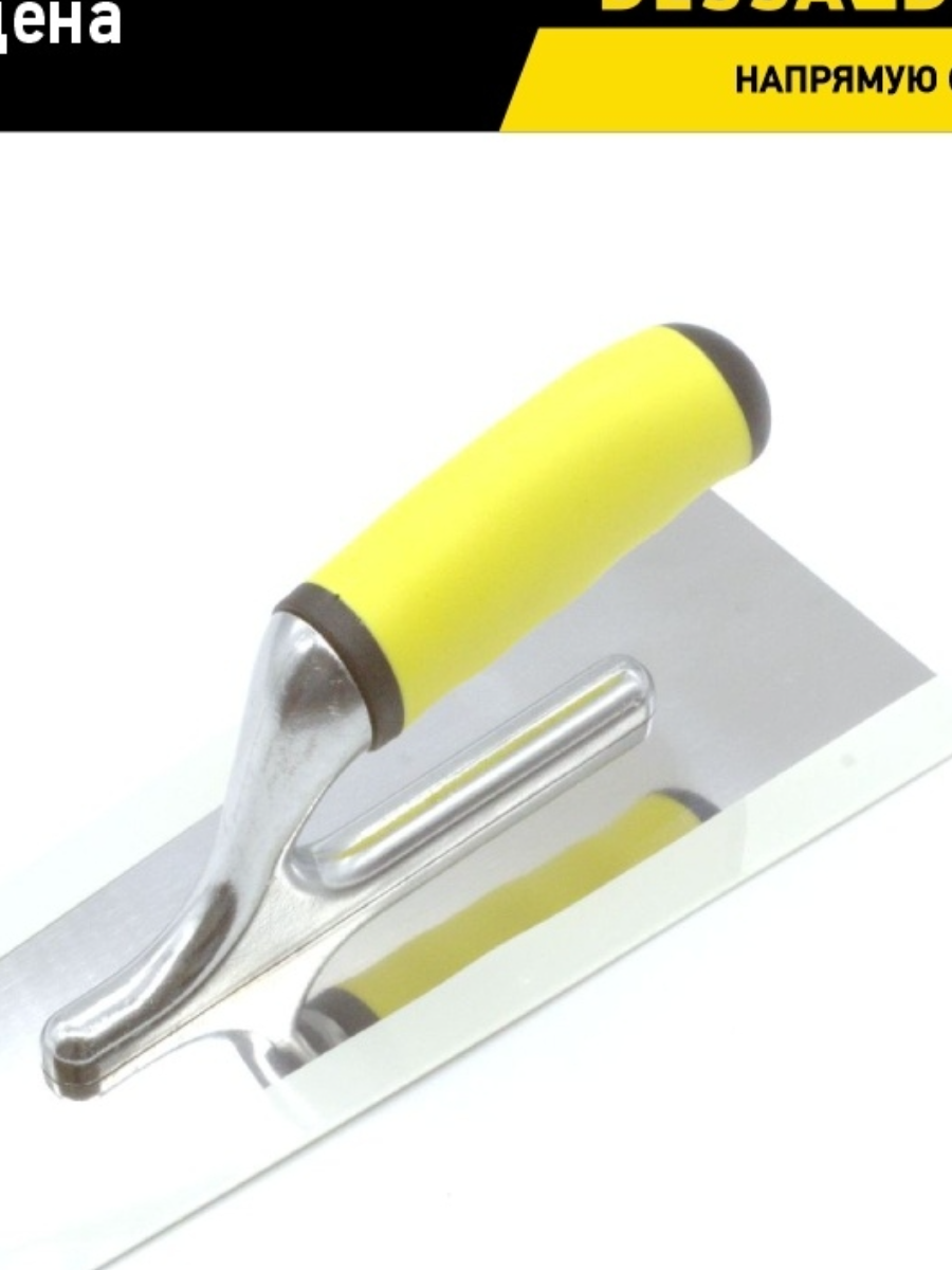 Кельма из нержавеющей стали с резиновой ручкой для нанесения декоративных материалов. Используется для нанесения декоративных штукатурок и красок, позволяет получить гладкую поверхность за счет обработанных краев и скруглений по периметру.