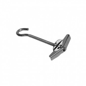 Складной пружинный дюбель с крючком имеет метрическую резьбу и складные стопорные крылья с пружинным механизмом. В сложенном состоянии крылья проходят сквозь отверстие плиты и раскрываются в пустом пространстве за плитой, обеспечивая надежное крепление.