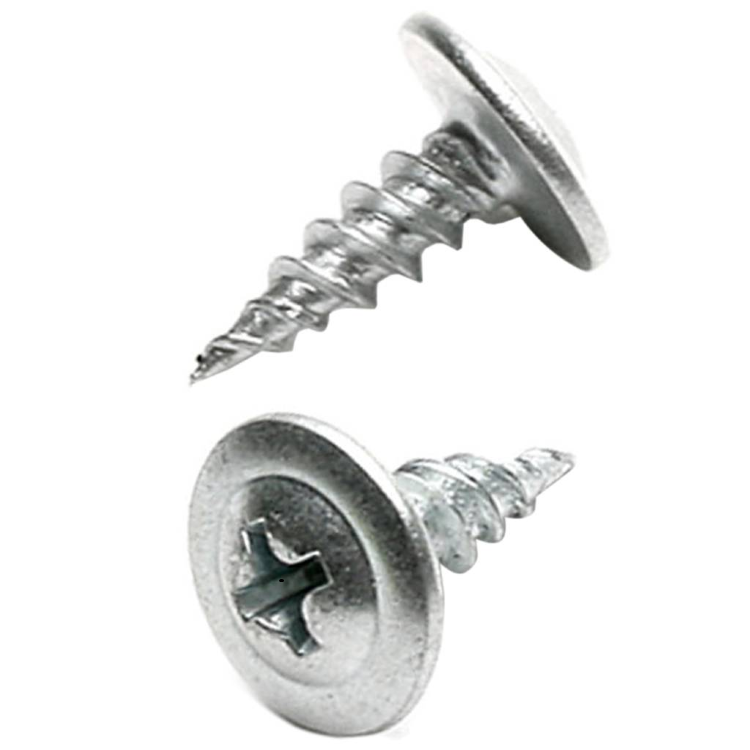 Острый шуруп серебристого или золотого цвета. Крестообразный шлиц Philips№2. Полусферическая шляпка с утолщением по краю. Две нити резьбы одинаковой высоты.