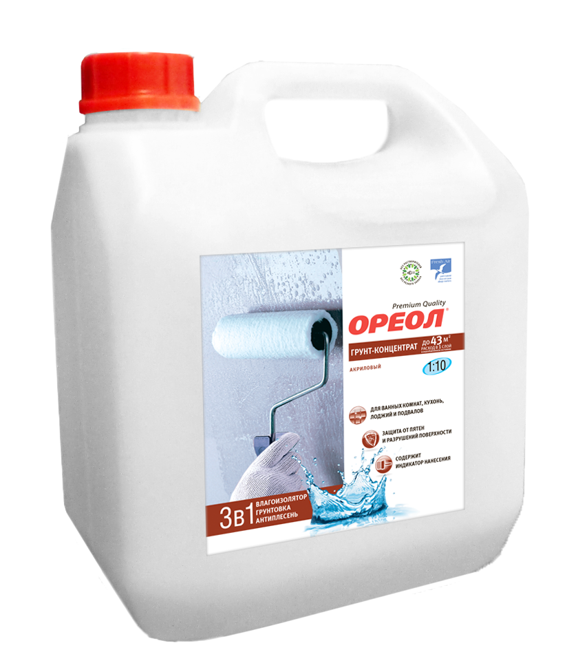 Грунт-концентрат "ОРЕОЛ" 1:10 влагоизолирующий для наруж. и внутр. работ 1кг /8/