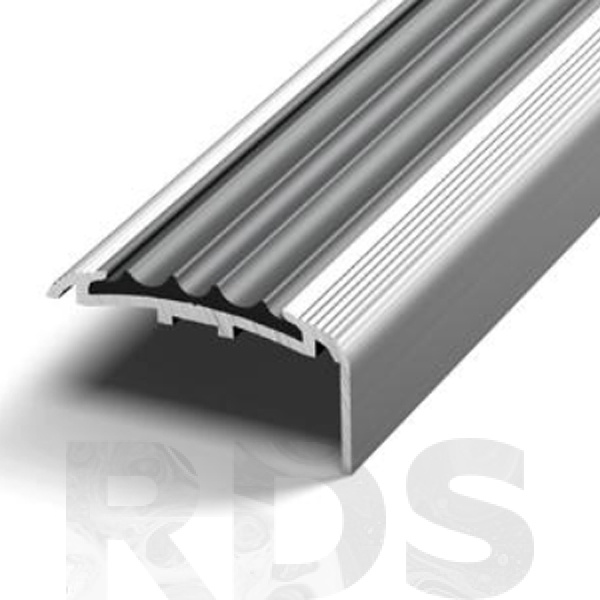 Накладка на ступень с одной вставкой из ПВХ черного и серого цвета, которая предохраняет от скольжения, а также выполняет функцию грязезащиты. Имеет скрытые монтажные отверстия.