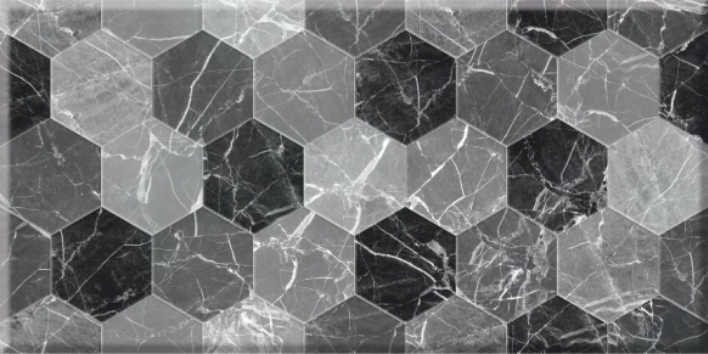 Настенная плитка Декор Дайкири черный 30х60 см, под камень, поверхность глянцевая, имитирует кладку шестиугольной плиткой. Коллекция керамической плитки для ванной комнаты Дайкири (Belani).