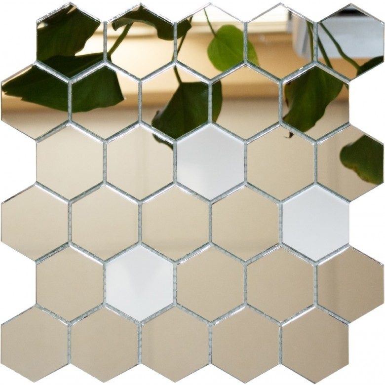 Зеркальная плитка в интерьере, как декоративный материал, гармонично и стильно смотрится в любом интерьере и сочетается с другими отделочными материалами: деревом, камнем, керамической плиткой. Зеркальная плитка — это зеркало, порезанное на определенные формы, края фрагментов которой обработаны и называются фацетом. Фацет создает игру бликов, смотрится более привлекательно. Обработка придает плитке эстетичный вид, повышает безопасность в эксплуатации. Зеркальная плитка может быть как традиционного серебряного оттенка, так и бронзового.