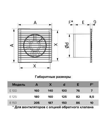 Вентилятор накладной E D125 сетка обр.клапан ERA