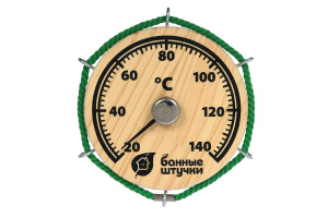 Термометр для бани и сауны Банные штучки Штурвал 14х14х2 см 18054 предупредит о повышении или понижении температуры в парной.