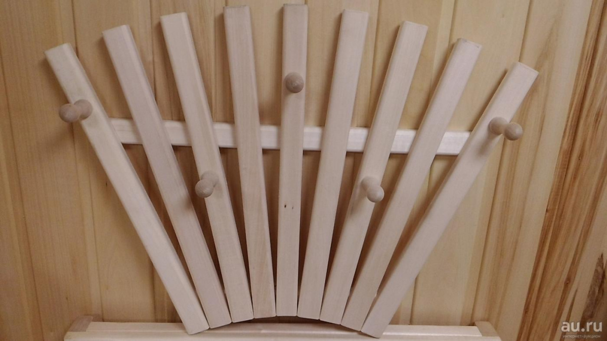 Деревянная вешалка из липы в баню и сауну с названием «Солнце». Придаст яркости в помещениях бани и сауны.